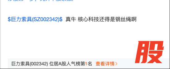 在股吧里,情绪更为直白。有用户留言称,“商业航天股民欠你一声谢谢”“核心科技还得是钢丝绳啊”。调侃与热情交织,将一家传统制造企业推上了概念风口。